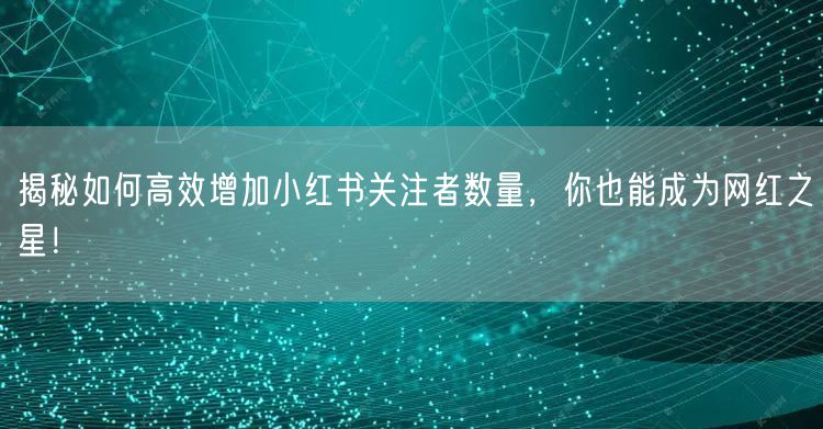 随着社交媒体的快速发展,小红书已经成为了一个汇聚众多网红和粉丝的平台。想要在小红书上脱颖而出,成为网红之星,就必须掌握高效增加关注者数量的秘诀。本文将为你揭示如何快速增加小红书粉丝,提升个人影响力,实现网红梦想!