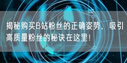 在B站这个充满活力和创意的平台,拥有众多的粉丝意味着更大的影响力和知名度。但是,如何正确购买B站粉丝,并吸引高质量粉丝呢?本文将为你揭示其中的秘诀。