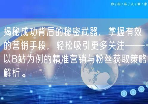 分析B站上的成功案例,深入了解他们是如何运用精准营销与粉丝获取策略取得成功的。