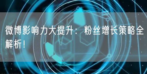 通过本文的解析,相信您对微博影响力提升的关键——粉丝增长策略有了更深刻的认识。在实际操作中,要结合自己的特点,制定合适的策略,不断尝试和优化,才能在微博平台上实现粉丝数量与影响力的双重提升。